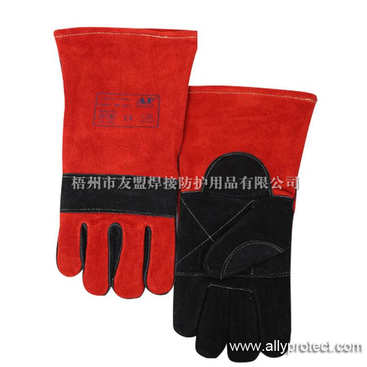 AP-0505 黑色配紅色牛二層皮高檔燒焊手套